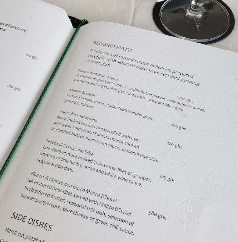 Country Club Accra Menu